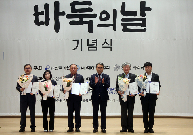 ¹®ÈüÀ°°ü±¤ºÎ Àå°ü ǥâÀº »ï¼ºÈÀçÇØ»óº¸Çè°ú LG, ÀÌ»óÈ£ Źé½ÃÀåÀÌ ¼ö»óÇß´Ù. ´ëÇÑüÀ°È¸ ȸÀå ǥâÀº À¯Ã¢Çõ¤ý¹ÚÁöÀº 9´Ü, ¹ÚÁ¾¼± ȼº½ÃüÀ°È¸Àå, ÀÓµ¿±Õ¤ý±èÁ¤¼± ¾Æ¸¶7´Ü¿¡°Ô ¼ö¿©µÆÀ¸¸ç, ±¹¹ÎüÀ°ÁøÈï°ø´Ü ÀÌ»çÀå ǥâÀº ±â¸íµµ Àü¶ó³²µµ¹ÙµÏÇùȸÀå, ±è´ë¿í TM¸¶¸° ´ëÇ¥, ÇѰÔÀÓ ¹ÙµÏ, ¿ÀÇзæ SRC ´ëÇ¥, ¹Ú°æµ¶ ¿ï»ê±¤¿ª½Ã¹ÙµÏÇùȸ ºÎȸÀå¿¡°Ô ÁÖ¾îÁ³´Ù.