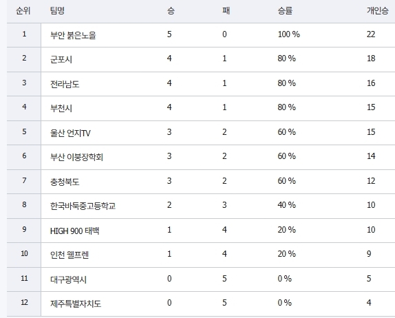ºÎ¾ÈÀº 4½Â1ÆÐÀÇ ÃÖȯ¿µ ¼±¼ö¸¦ ºñ·ÔÇØ °¢°¢ 3½ÂÀ» ±â·ÏÇϰí ÀÖ´Â °­À¯½Â°ú ¿ÀÇü¼®, 3½Â1ÆÐÀÇ ¹ÚÀ絿°ú ¿©ÀÚ ¼±¼öÀÎ Á¤ÇÏÀ½(4½Â1ÆÐ), ÀåÀ±Á¤(3½Â), ÇÑÁö¿ø(2½Â) µî ¼±¼ö Àü¿øÀÌ °í¸¥ ¼ºÀûÀ» °ÅµÎ¸ç ¾ÐµµÀûÀÎ ¸ð½ÀÀ» º¸¿©ÁÖ°í ÀÖ´Ù.